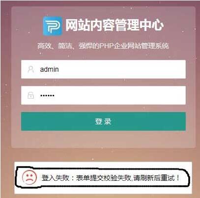 一、如果出现 登入失败,pbootcms登录请求发生错误,表单提交校验失败 ,请检查您的服务器环境,然后刷新页面重试