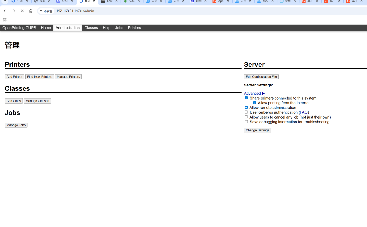 判断打印机连接好了没,可以看看OpenWrt集成的打印服务里有没有打印机型号